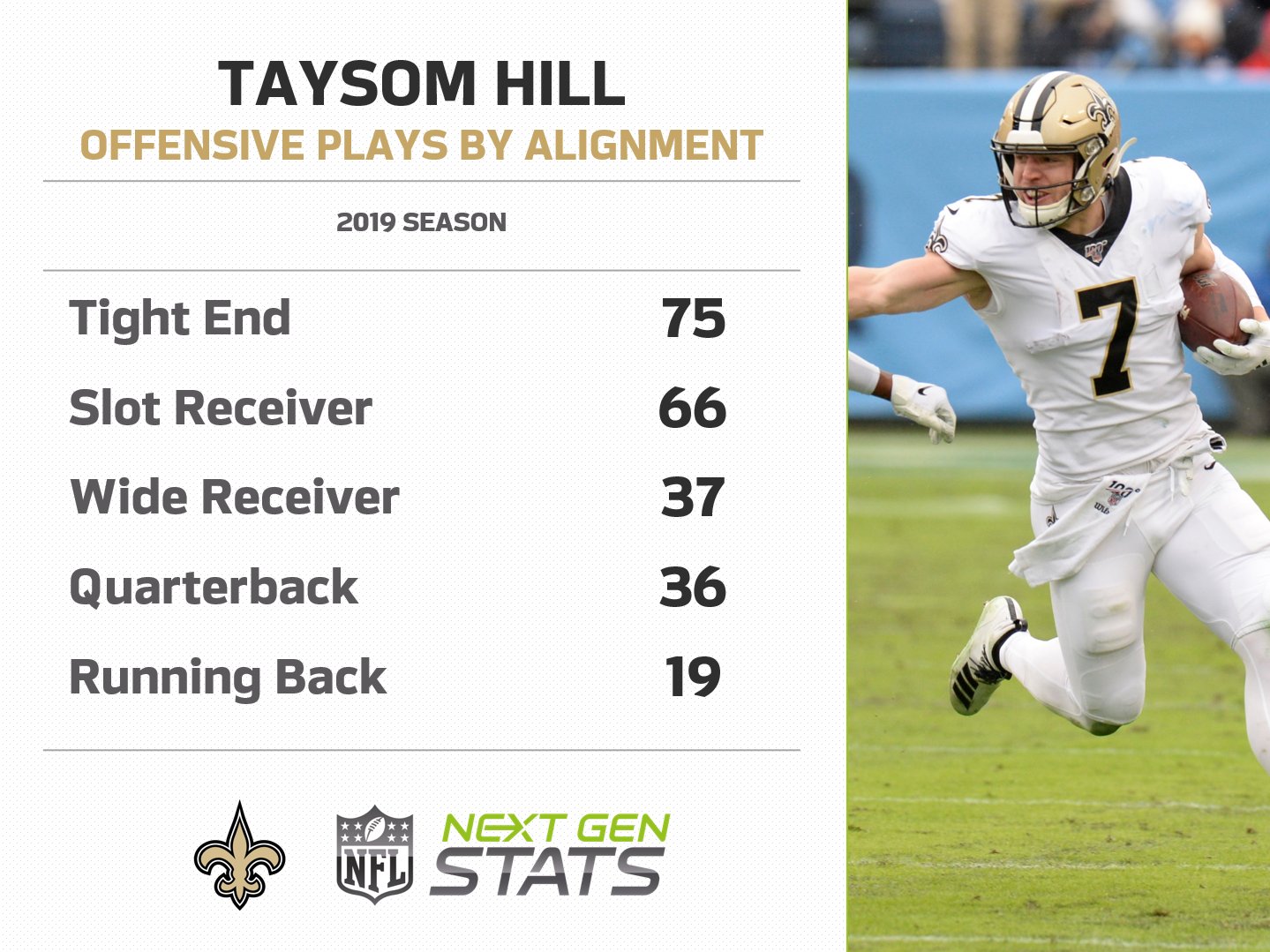 Next Gen Stats On Twitter Taysom Hill Is The Only Nfl Player To Play 30 Snaps At Tight End Slot Receiver Wide Receiver And Quarterback This Season Tight End 75 Slot